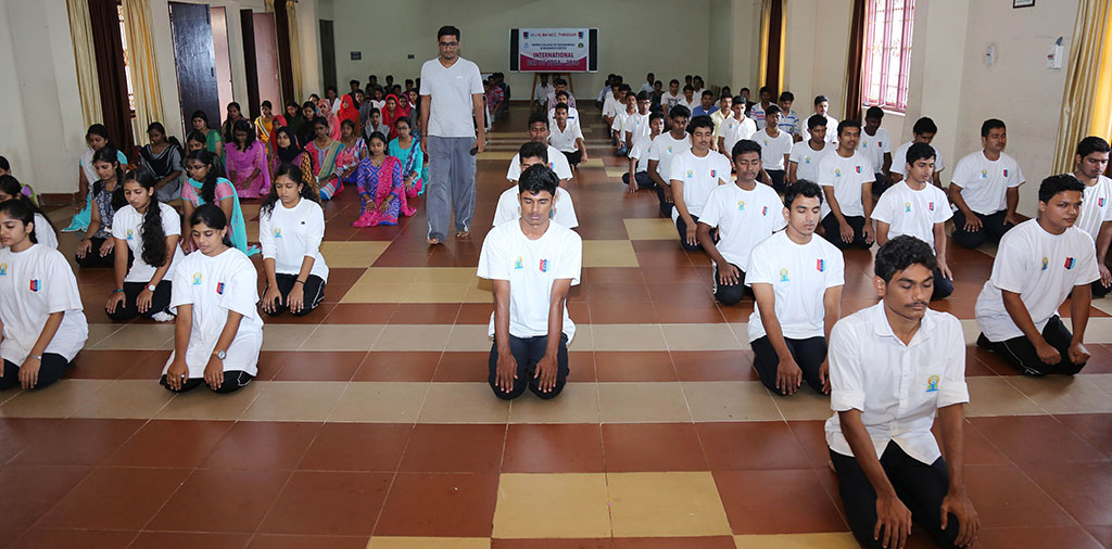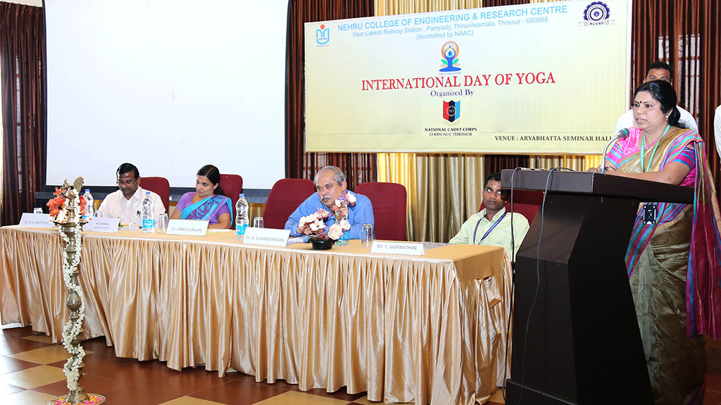 Yoga is a physical, mental and spiritual practice originated in Bharat or India. The Indian Prime Minister, Shri Narendra Modi in his UN address suggested the date of 21 June, as it is the longest day of the year in the Northern Hemisphere and shares special significance in many parts of the world. For keeping stress at bay and to enable the students to tolerate the potential stress associated with life, Nehru college of engineering & Research centre organizes a physical exercise and yoga session every morning which is mandatory for all the students and faculty members. It helps them to maintain harmony of body and spirit. It also increases attention span, improves memory and sharpens the focus of the students. It is also prolific for stress reduction, and emotional wellness.