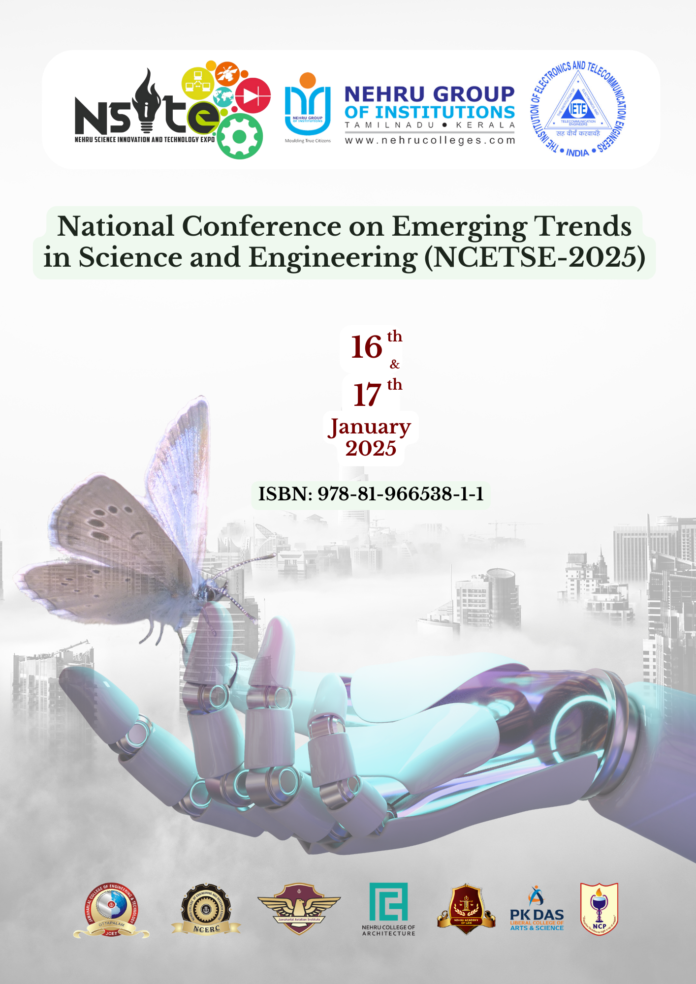 The National Conference on Emerging Trends in Science and Engineering (NCETSE-2025), organized by Nehru College of Engineering and Research Centre (NCERC) in association with IETE Palakkad & Kozhikode Sub-Centres, was successfully held on January 16-17, 2025, as part of Nehru Science Innovation and Technology Expo (NSITE 2025).