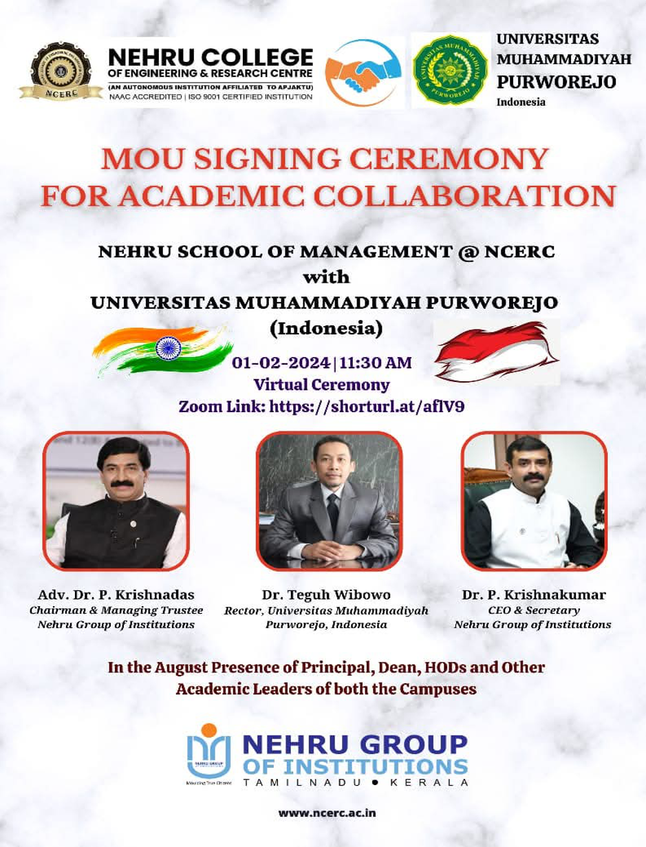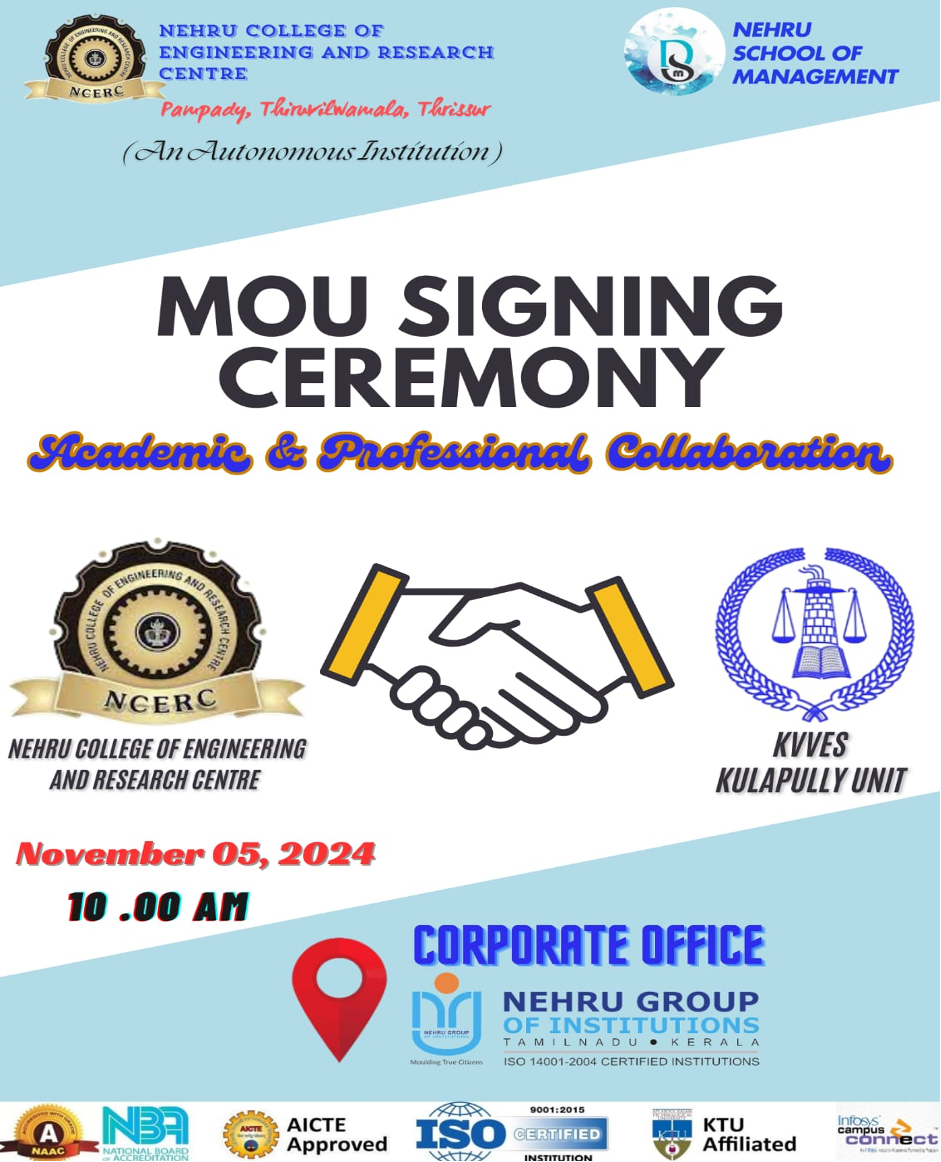 The MBA program at Nehru College of Engineering and Research Centre offers industry-relevant specializations such as Finance, Marketing, Human Resource Management, Operations, and Systems. The curriculum is designed to meet current business trends, making NCERC one of the best MBA colleges in Kerala for management education.
