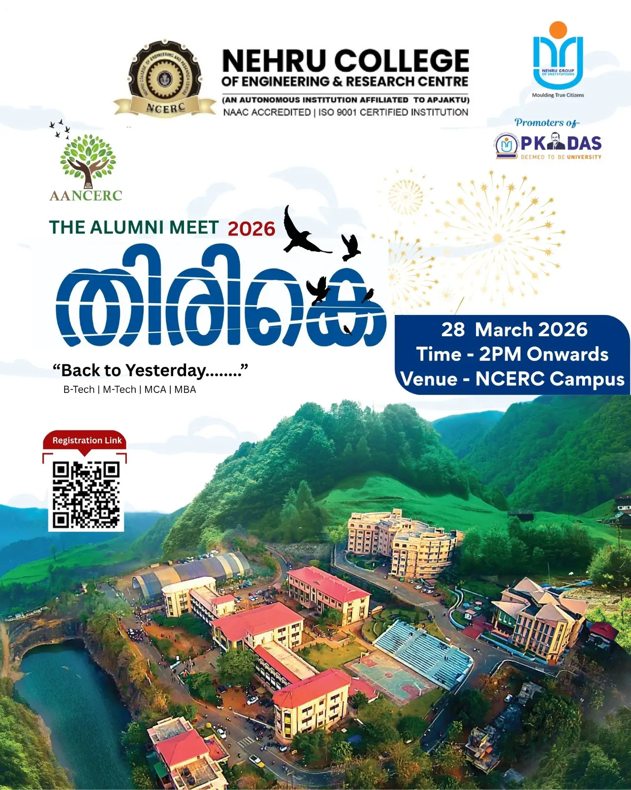 With great joy and nostalgia, we are delighted to invite you to the NCERC Alumni Meet 2026 β a special occasion to relive cherished memories, reconnect with old friends, and express our heartfelt gratitude to our beloved teachers and well-wishers.